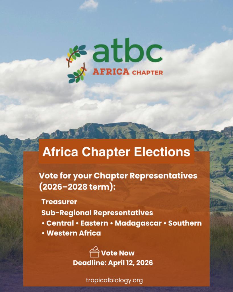 ATBC Africa Chapter Officer Elections We invite all Africa Chapter members to participate in the ATBC Africa Chapter Elections for the 2026–2028 term. Your vote is essential in shaping the leadership and direction of the Chapter. Voting Period Voting is open until April 12, 2026, at 10:00 PM (Eastern Time). All votes are confidential and […]